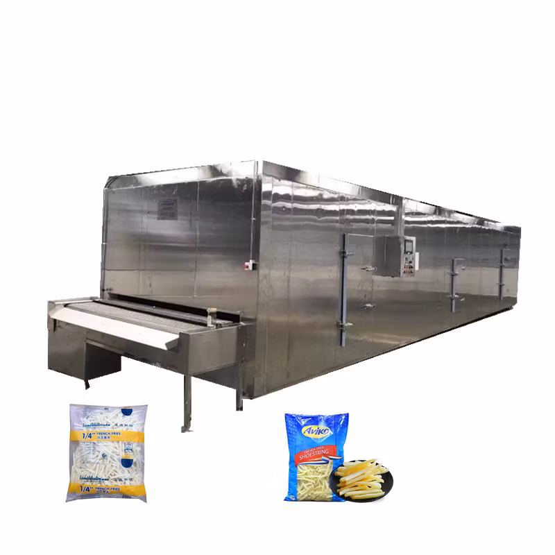 Установка замороженного картофеля фри в обрабатывающей промышленности обработки потока: Подъем машины - стиральные машины и ----Strip-Cutting подборочного аппарата линии машины - подъем машины - Промывка машины -- или товарного вида необязательно линии ----виброгрохот осушителя воздуха обезвоживания линии - Непрерывное время жарки машины ----виброгрохот осушителя воздуха deoiling машины - быстрозамороженные машины -- автоматическая упаковочная машина-холодного хранения.